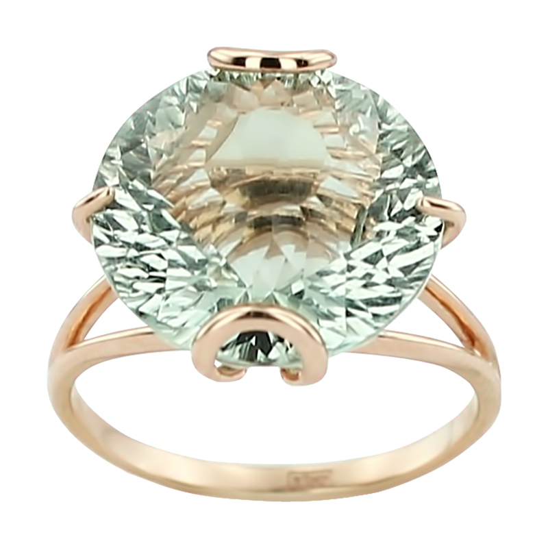 Кольцо 1099Аз выполнено из золота 585 пробы и украшено натуральными вставками: 1 Аметист зеленый круг 12,0 мм, вес 6,025 карат