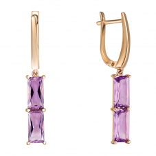 Кольцо 1919А выполнено из золота 585 пробы и украшено натуральными вставками: 2 Аметист багет 5 мм на 10 мм, вес 2,88 карат
