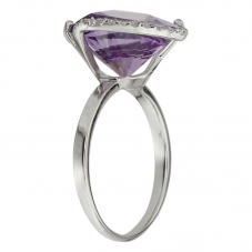 Кольцо 766АБр выполнено из белого золота 585 пробы и украшено натуральными вставками: 1 Аметист антик со смещенной площадкой 12*12=5.5213 Бриллиант Круг17 1,0 2/3А (200-400)=0.06