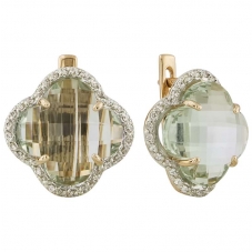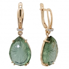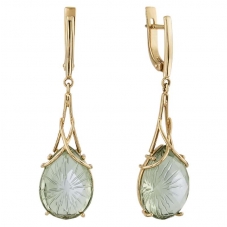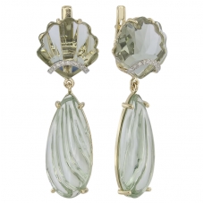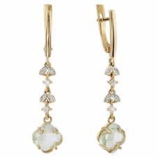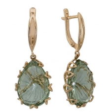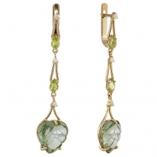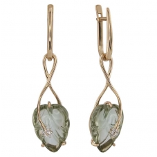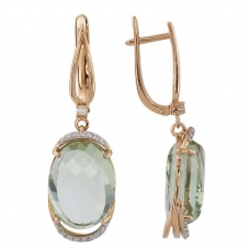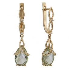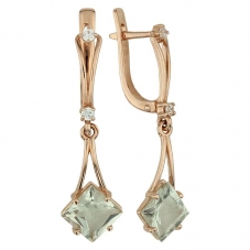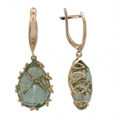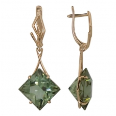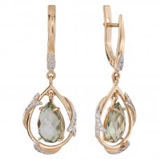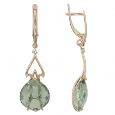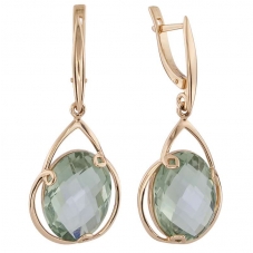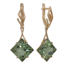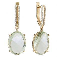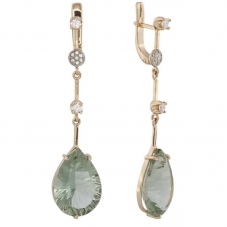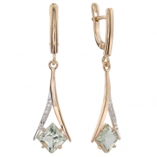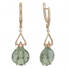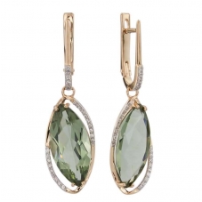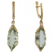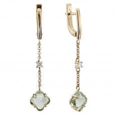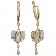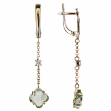Серьги подвесные с аметистом зеленым