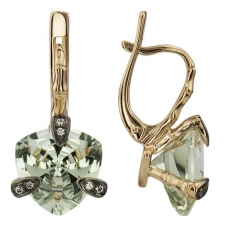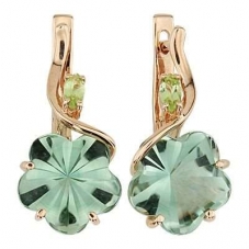 Золотые серьги с зелёным аметистом